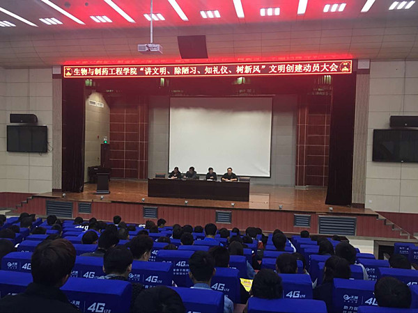 10月27日,学院在学术报告厅召开“讲文明、除陋习、知礼仪、树新风”文明创建动员大会。学院党总支副书记程喜荣在会上发表讲话,她强调,生物与制药工程学院文明创建工作一定要结合自身实际,深入班级、深入寝室、深入个人,通过活动的开展,突出创建主题,丰富创建内涵,提炼创建成果。会上,园林201501班王中燚同学宣读了倡议书。