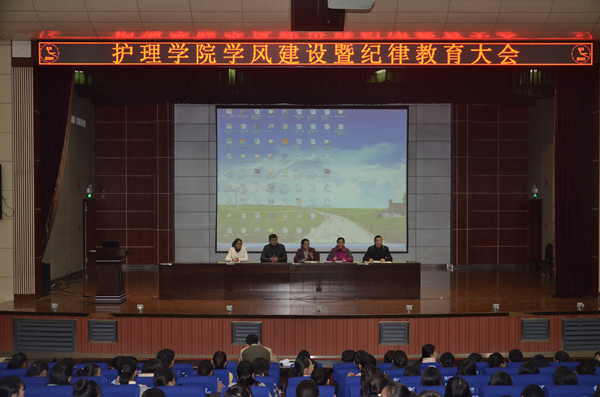 11月10日下午,护理学院在学术报告厅组织召开2016年学风建设暨纪律教育大会,学院400余名学生代表参加本次会议,护理学院党总支书记王莹华、副书记张朋生及全体专职辅导员出席会议,饶凤英主持会议。