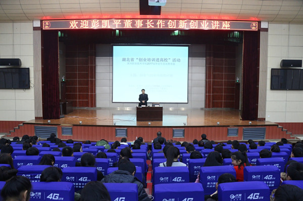 2016年12月10日下午14:00,以《创业与创业风险的回避》为主题的创新创业专题讲座在学校学术报告厅隆重举行。讲座邀请了taptap点点校友、武汉星点投资管理有限公司董事长、武汉创业导师团导师•天使投资人、武汉大学EMBA工商管理硕士彭凯平为主讲人。就业指导处处长袁畅、副处长陈国清,各教学学院就业联络员及学生代表近600人聆听了此次讲座,讲座由袁畅主持。