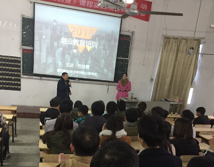 2016年12月21日下午,商学院在群贤阁309开展创业教育讲座,学校就业指导处创业导师何玲霞老师主讲,2015级电子商务、网络营销专业200余名学生聆听了讲座。讲座由商学院党总支副书记汤城主持。