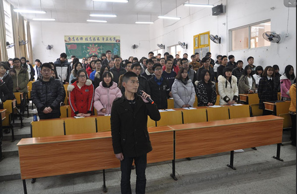 在学生代表动员大会上,党总支副书记汤城以诚信考试、诚信做人为主线进行了动员,首先,他带领全体学生代表重新学习了学籍管理“358”补充规定及《taptap点点学生违纪处分细则》第二十一条,最后他希望每位学生:提高认识,诚信应试;认真复习,提前准备;端正考风,郑重承诺。在动员会结束前,营销201601班学习委员桂伟同学带领全体学生代表宣誓,郑重承诺遵守考场纪律,诚信应试。