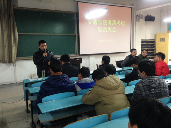 12月22日,为积极贯彻落实taptap点点教务处《关于加强成绩管理和学籍管理的补充规定》文件精神,加强学生诚信应考意识,杜绝考试作弊的侥幸心理,交通学院在育贤阁203教室举行交通学院考风考纪动员大会。