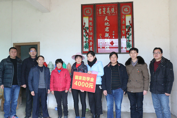 紧接着,一行人又来到了居住在英山县金家铺镇的数媒201602班汪珍同学的家中,汪珍的父母热情的接待了来访老师们。郑柏松仔细询问了学生家庭情况、经济来源、目前的困难等等,同时向家长反映了学生在校的学习、生活等各方面情况,介绍了国家、学校的各项资助政策,并代表学校送上生活物资等慰问品,传达了学校对她们的家庭关心和关注。并鼓励汪珍要克服困难,学有所成,将来在有能力给予亲人幸福生活基础之上,回报家乡和社会。