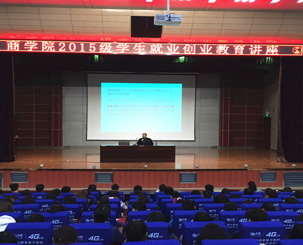 为引导商学院2015、2016级学生树立正确的就业观,培养创新创业精神,了解应届大学毕业生就业现状,激发就业创业热情,提升创业、就业竞争力,2017年3月29、30日晚,商学院举办“商学院2015、2016级学生打造就业创业核心竞争力”专题讲座。主讲人为商学院党总支副书记汤城老师,就业联络员孙萍老师主持讲座,商学院2015、2016级全体学生及辅导员聆听了讲座。