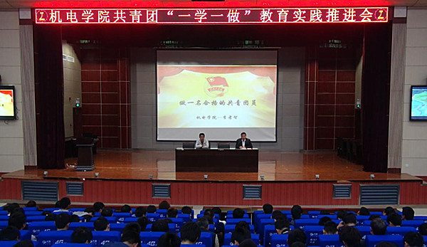 2017年4月20日,机电学院共青团“学习总书记讲话 做合格共青团员”教育实践推进会在学校学术报告厅隆重举行。机电学院党总支书记杨勇、副书记焦爱新、全体辅导员及600余名学生参加了会议,会议由杨勇主持。
