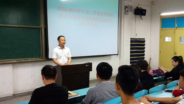 在简短的比赛开幕式上,公共课部主任黄爱良作了热情洋溢的讲话。他首先祝贺这次现场作文大赛的举办;其次为在这样一个“物质”的社会里还有这么多同学热爱文学、热爱写作表示欣慰和高兴;最后他祝同学们在比赛中赛出精神、赛出水平,大赛圆满成功。
