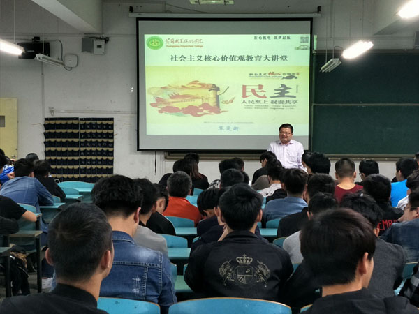 社会主义核心价值观教育大讲堂的开展,是机电学院思想政治教育工作的一次创新,也是积极践行社会主义核心价值观的重要举措。机电学院思想政治教育专题化、制度化、常态化,社会主义核心价值观进教室、进宿舍、进头脑,对青年学生树立远大理想、坚定社会主义信念、养成良好学习习惯奠定了扎实的基础。