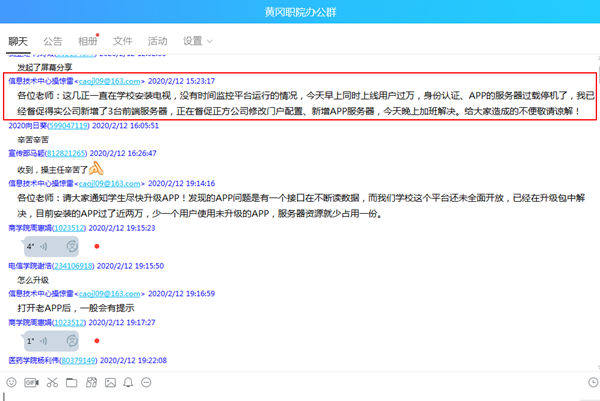 为做好在线教学工作,在校领导的协调下,教务处、信息技术中心、质量管理处、学工处、人事处及各教学单位各司其职,协同合作,共同为在线教学工作的顺利实施保驾护航。为了测试“智慧黄职”云教学平台的运行能力,在2月13日学校在线教学正式开启之前,教务处2月12日在平台中开设了新春第一课《疫情防控知识》,通过全校过万用户同时登录学习,平台和APP均出现过载停机的情况,为解决平台在应用期间出现的各项问题,2月14日,熊发涯组织正方软件股份有限公司董事长叶青松、得实信息科技(深圳)有限公司总经理郑林伟、武汉意丰科技有限公司总经理刘泽林及学校教务处、信息技术中心负责人等召开视频会议,共商解决问题的具体措施。会后,各大公司增派技术力量,全程监控和解决线上教学的问题,2月15号全线开动,云教学平台得到了新一轮的优化。质量管理处牵头制定《taptap点点疫情防控期间教学督导工作方案》,科学开展教学督导,对在线课程的教学情况进行线上抽查听课,确保学校的教学质量不降低。