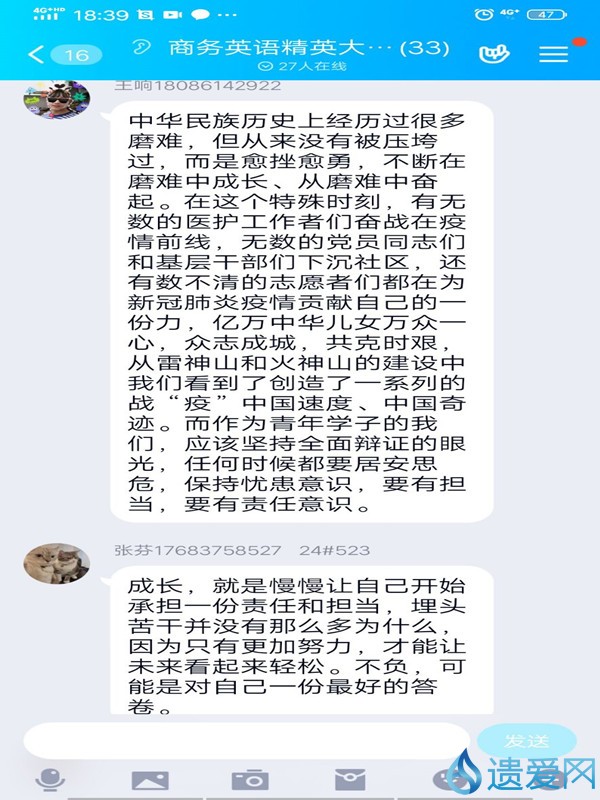直播结束后,师生纷纷在学生工作QQ群、班级QQ群及微信群发表观后感言,深刻认识到这是抗击疫情的斗争,是一堂现实的时政课、一堂鲜活的时政课、一堂深刻的时政课,一堂难忘的时政课。