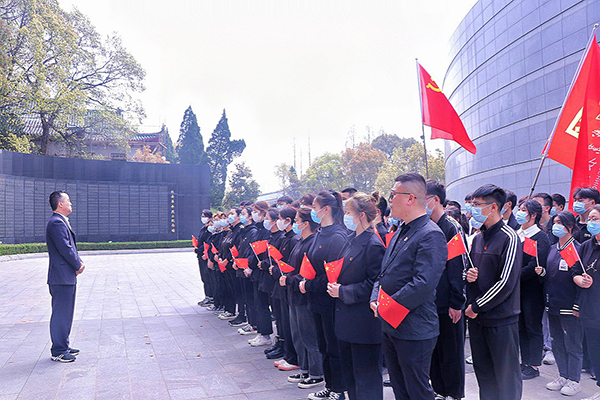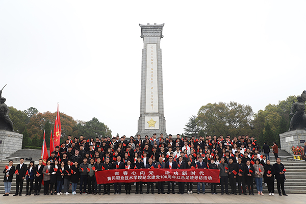 全体师生到达黄麻起义和鄂豫皖苏区革命烈士陵园后,在黄麻起义和鄂豫皖苏区革命烈士纪念碑前举行了庄严的祭奠革命先烈仪式。仪式由熊楚舒主持。仪式开始,大家齐唱中华人民共和国国歌;全体师生列队整齐,神情肃穆,怀着无比崇敬的心情向革命先烈集体默哀;郑柏松、王莹华同志代表师生敬献花篮;全体党员在崔现强领誓下,面向党旗重温入党誓词。