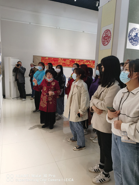 卢华大师亲切地接待了我们参观的师生,给我们讲解每副作品背后的故事和蕴含的深意,有历时八个月打造的古典题材《清明上河图》,有疫情期间历时十个月制作的展现社会主义幸福中国题材的《遗爱湖十二景》等等,展出的作品内容丰富、构图巧妙,既吸收了传统文化营养,又融入了民间剪纸的表现手法。引得同学们不时发出阵阵惊呼,纷纷拍照留念。