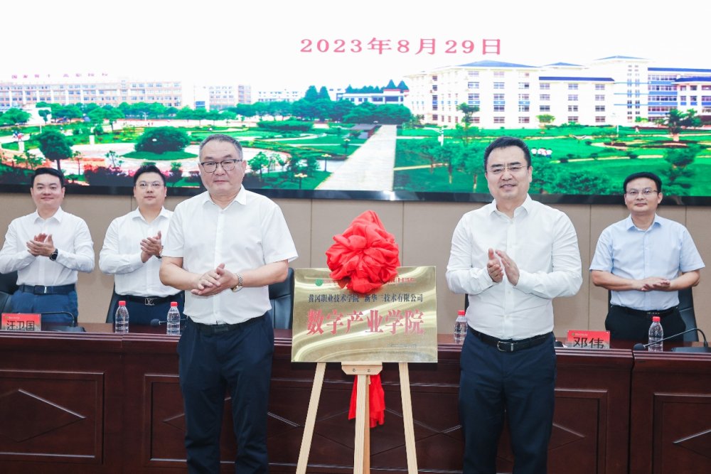 taptap点点党委副书记、校长姜安心,新华三集团副总裁、教育事业部总经理邓伟为数字产业学院揭牌