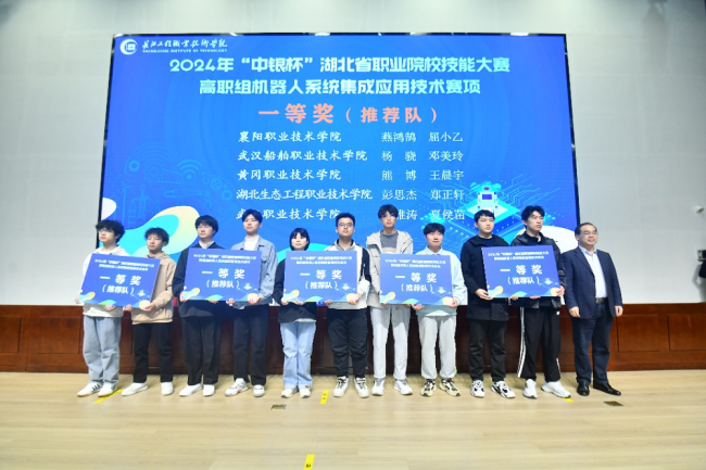 3月17日,2024年“中银杯”湖北省职业院校技能大赛机器人系统集成应用技术赛项闭幕式在长江工程职业技术学院举行。黄冈职院智能制造学院工业机器人技术专业学生推荐队、抽测队和两名教师王荣博、周小薇共四个参赛项目全部获得一等奖,教师总成绩第一,赛项总成绩第一,王荣博老师个人全能排名第一,实现该赛项一等奖“全满贯”,黄冈职院也荣获该赛项今年唯一一等奖“全满贯”学校殊荣。