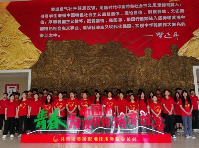 在红馆大厅,合影时,汽服202301班袁笑晗同学献上一首军旅歌曲《当那一天来临》,在她的带领下,50余名青年大学生一起跟唱,全场燃爆,自发合唱“当那一天来临”。歌曲《当那一天来临》创作于2005年,由王晓岭作词、王路明作曲,描绘了军队战士士气磅礴、战意凛然的宏伟画卷,并传达出居安思危的意识。国家兴亡匹夫有责,当祖国和人民面临危机时怎么办?歌曲做出了庄严的回答:放心吧祖国,放心吧亲人,为了胜利,我要勇敢前进!