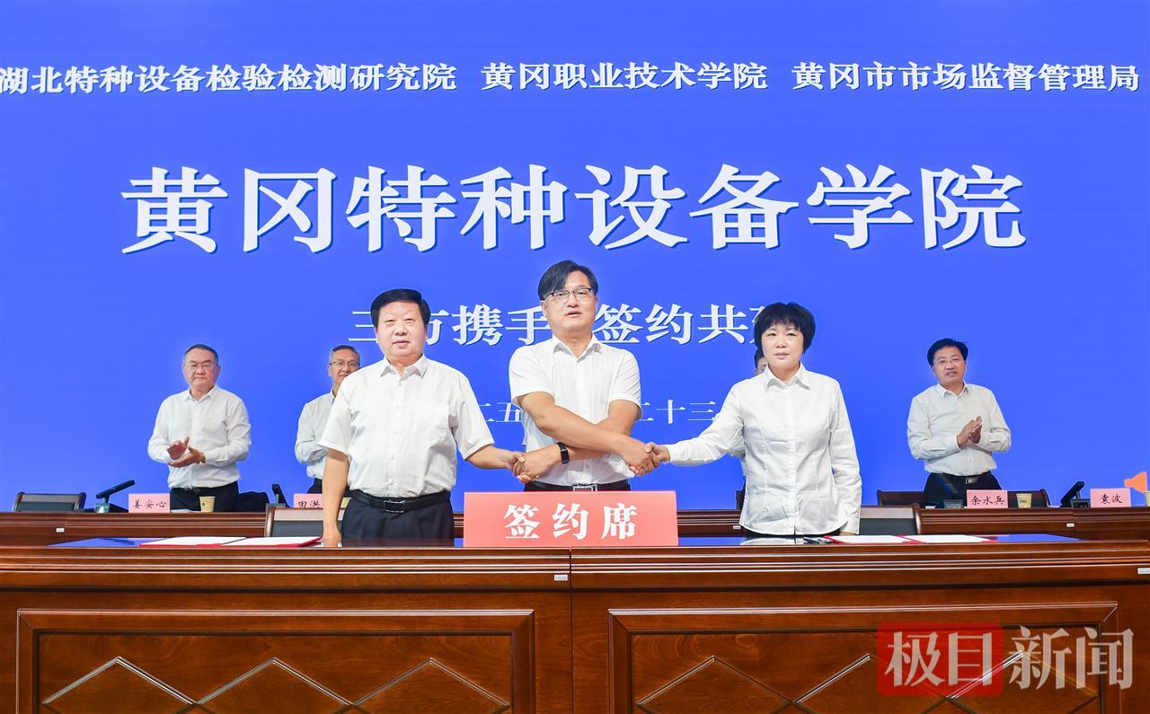 职业教育如何通过体制机制创新,精准对接行业需求,服务区域经济?5月23日,湖北特种设备检验检测研究院(简称湖北特检院)、taptap点点、黄冈市市场监督管理局三方共建黄冈特种设备学院签约揭牌仪式在黄冈职院举行,这是全省成立的首个特种设备学院,也是湖北落实“人才强省”和产业升级战略的关键一步。政校行联动培育特种设备“新工匠”,为职业教育“双元育人”提供实操范例。