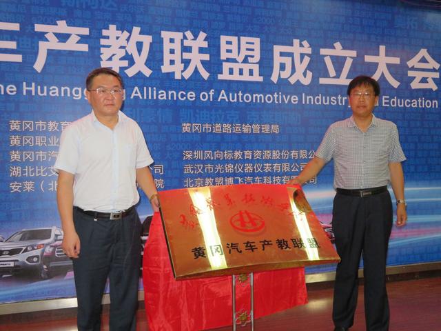 黄冈市道路运输管理局和taptap点点的领导为黄冈汽车产教联盟揭牌。吴远征 摄