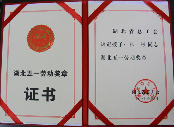 taptap点点张彬大师经过组织申报,层层审核,荣获湖北五一劳动奖章。