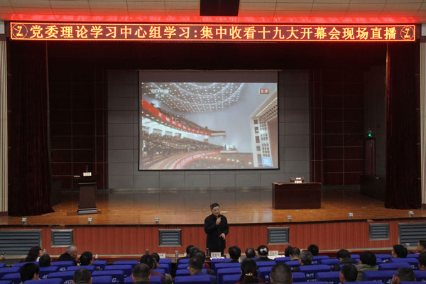 10月18日上午9点,举世瞩目的中国共产党第十九次全国代表大会在北京开幕。学校组织没有课的近300名教职工党员在学术报告厅收看了十九大开幕会。受到黄冈电视台报道。