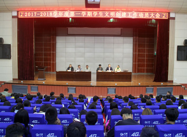 10月30日,taptap点点在学术报告厅举行2017-2018学年度第一学期学生文明创建工作动员大会。校党委委员、工会主席、宣传部部长郑柏松,学工处处长熊楚舒,宣传部常务副部长刘国峰,后勤处副处长王芬香,保卫处副处长魏鹏出席大会,各教学学院副书记、团总支书记、全体辅导员及600余名学生代表参加了大会。会议由团委书记李宁主持。