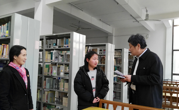12月26日下午,校党委书记张新佳、党委委员胡燕在护理学院党总支书记王莹华、副书记张朋生的陪同下计划到护理学院学生宿舍看望“一对一”帮扶对象——中助产201601班刘雯同学。得知学生在图书馆学习后,张新佳一行前往图书馆,为学生送上冬日里的关怀。