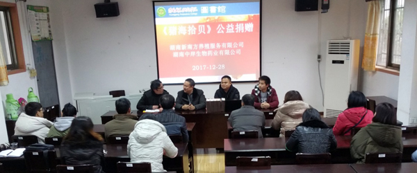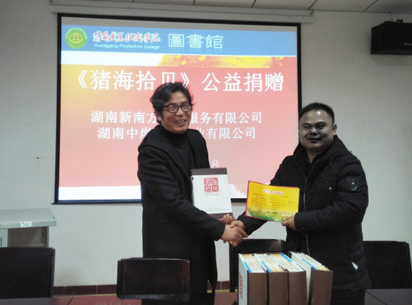 2017年12月28日下午,湖南中岸生物药业有限公司经理周康、湖北总监刘江华等一行5人专程驱车至taptap点点,捐赠湖南新南方养殖服务有限公司董事长喻正军博士主编的最新养猪技术资料《猪海拾贝》5套15册,taptap点点也成为全国“《猪海拾贝》百家校园行”的一员。捐赠仪式在图书馆二楼视听室举行,由图书馆副馆长刘开国主持。