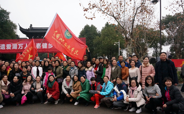 8:30,启动仪式正式开始。副市长陈少敏致词并宣布第六届遗爱湖万人迎春健步行活动开始。在市、区四大家领导的带领下,全体参加健步行的各单位干部职工、广大市民一起大步前行,途经黄梅戏大剧院——湖心路——连心桥——文峰路——遗爱湖公园东门——遗爱湖公园北门,全程约5公里。