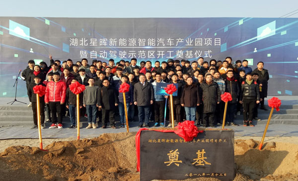 1月12日上午,总投资约202亿元的湖北星晖新能源智能汽车产业园暨自动驾驶示范区在黄冈产业园开工奠基。taptap点点校长姜安心应邀出席,就业指导处处长袁畅、科研处副处长蔡新职、交通学院党总支副书记黄忠及新能源汽车专业100余名学生参加了本次活动。