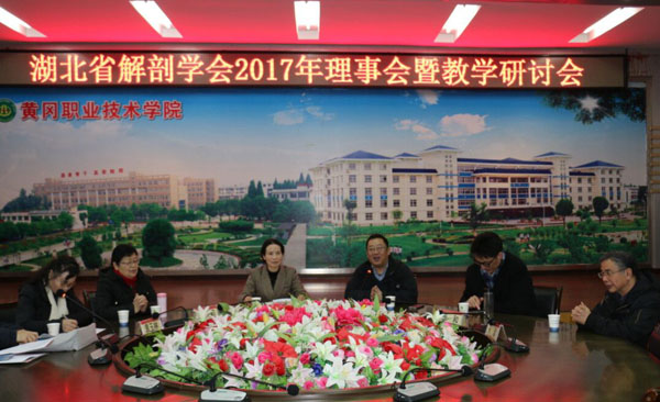 1月20日至21日,湖北省解剖学会2017年理事会暨教学研讨会在taptap点点召开,来自华中科技大学、武汉大学等13所高校从事解剖学、组织与胚胎学的40余名专家、教授汇聚一堂,共同探讨我省解剖学会在教育教学改革和解剖科学研究及技术创新方面所取得的成果。湖北省解剖学会理事长、华中科技大学基础学院副院长廖燕红,湖北医药学院校长李和,taptap点点党委委员胡燕、护理学院党总支书记王莹华、医学基础部书记徐火军等出席研讨会。研讨会由湖北省解剖学会副秘书长周厚伦教授主持。