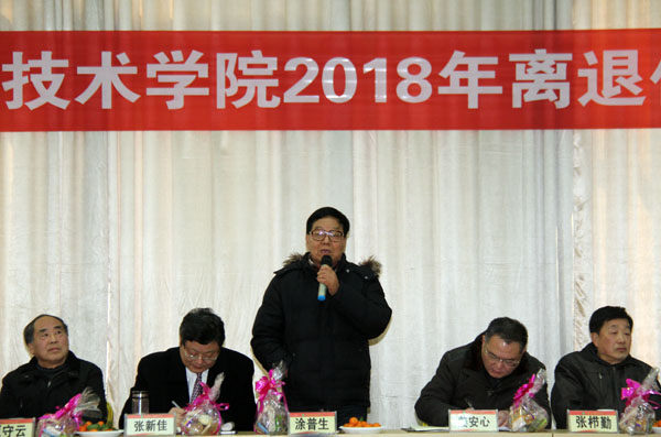 党委书记张新佳代表学校党委和行政亲切问候离退休老同志,并向大家致以新年美好祝愿。他饱含深情地说:“离退休老同志是学校的宝贵财富,是学校改革发展的重要力量!看到大家都很健康,每位老同志都面带笑容,我们感到非常高兴,老同志健康长寿、幸福快乐是我们最大的心愿!”张新佳还从党的十九大指明了职业教育的前进方向,市委、市政府、省教育厅对学校的关心支持,学校有一批敢打硬仗、能打胜仗的教职员工,广大离退休老同志积极关心支持学校改革发展等四个方面表示对学校明天会越来越美好充满信心。张新佳强调,新的一年,学校党委行政将继续把关心好、照顾好老同志作为义不容辞的责任,用心用情做好离退休的各项工作。