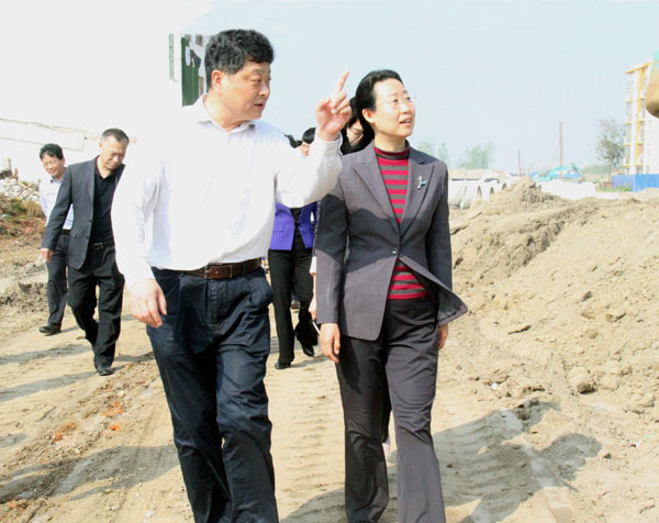邱丽新(右)一行参观黄州大道延伸线施工现场