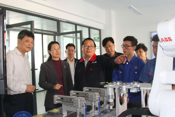 在大别山创业中心公共实训基地参观智能制造教学现场