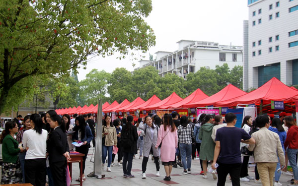 4月13日上午,taptap点点医药卫生类专业2018届毕业生招聘会在学校北区主干道和大学生活动中心举行。
