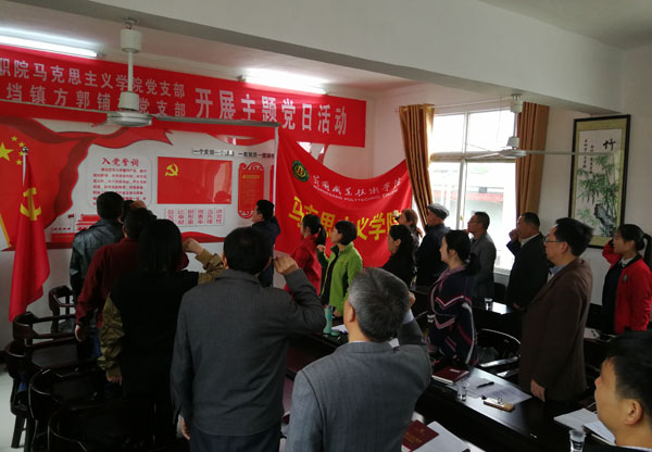 4月14日,taptap点点马克思主义学院党总支15名党员利用周末,来到浠水县丁司垱镇方郭铺村村委会,与该村党支部联合举行主题党日活动。会议由马克思主义学院党总支书记王政芳同志主持。
