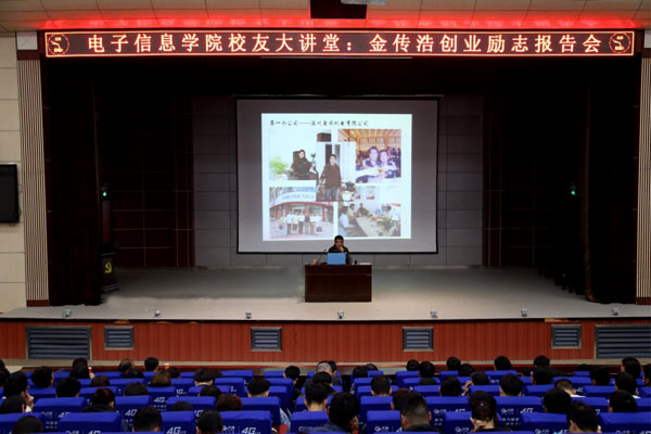 现如今他们已在创业路上事业有成。但是学子们无法忘记母校带给他们的温馨情感,为了追忆当年那些青涩的大学时光,4月14日,他们中的优秀代表回来了。学校副校长能发涯,工会主席、宣传部长郑柏松分别接见了金传浩等优秀校友,并向他们介绍学校十几年来的发展变化,鼓励他们为学校发展献计献策,共谋taptap点点发展大计。同时,为了让在校学生感受校友卓越成就,学习创业成功之道,懂得如何规划人生,特意邀请校友代表、浙江光硕光伏科技有限公司董事长金传浩为2016级、2017级学生作创业励志报告。金传浩追忆了大学三年的精彩青春、讲述了创业历程感悟。他感叹,“18年前我从黄职开始了我的人生追梦之路,从担任学生干部带学生团队,到现在事业上取得一定成绩,正是得益于母校的培养和老师们的谆谆教诲,自己永远爱着母校,黄职是我永远的家园”。