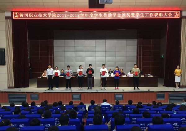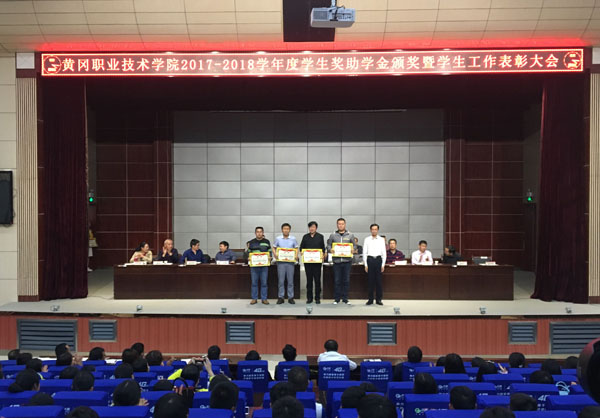 会议在庄严的国歌声中拉开帷幕。会上,夏学文宣读了国家奖学金、国家励志奖学金、国家助学金、学校奖学金、学生突出贡献奖、学生工作先进单位等表彰文件,并对受表彰的先进集体和个人及受资助的全体同学表示热烈的祝贺。在欢快的乐曲声中,校领导为获奖获助的个人和单位颁发了奖状、奖牌、奖金,气氛隆重而又热烈。