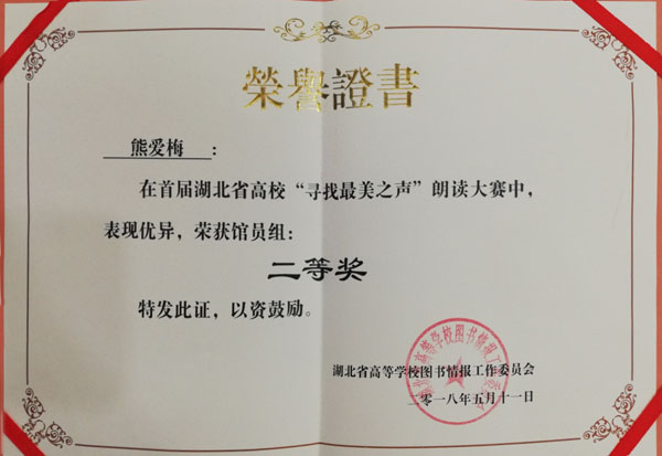 5月11日,首届湖北省高校“寻找最美之声”朗读大赛决赛在武汉大学图书馆总馆学术报告厅举行,来自20所不同高校的读者代表队济济一堂,在比拼中相互交流学习、诠释经典,我馆选送的作品取得不俗的成绩。