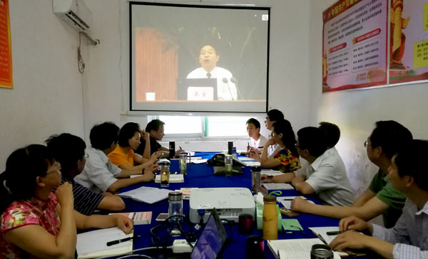 5月14日下午2点,马克思主义学院没有授课任务的专兼职教师济济一堂,接受来自教育部网培中心关于高校思想政治理论课2018版教材的使用培训。校党委书记张新佳作为分管马克思主义学院的校领导,到培训现场,与大家一起学习。