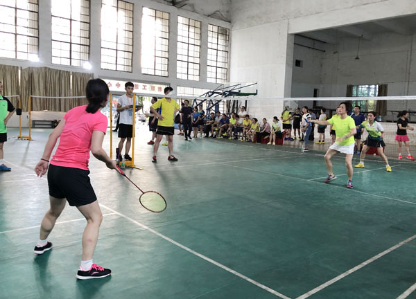 比赛过程中,各代表团精诚合作,合理分工,相互指导,呐喊助威,鼓舞士气,每个选手充满激情、充满斗志地迎接每一次挑战,每个精彩扣杀让人惊心动魄,每个轻便灵巧的网前挑球让人目不暇接,每一次精准的落点无不令场外观众拍手称赞。每一场比赛,队员们配合默契,运用各种球技、步法对击博弈。在冠亚军争夺赛上,机关二总支选手龚勤、周华斌对阵公共课部选手占明、王颖之间的男子双打比赛,他们精湛的球艺、经典的配合将羽毛球赛推向了高潮,观看的教工和学生掌声、笑声、喝彩声连成一片,他们的表现给现场球迷们呈上了一份饕餮盛宴。