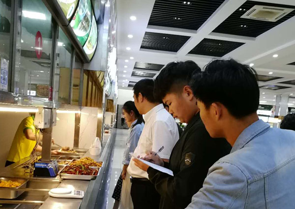 近段时间,学校4个餐厅经常出现一群师生的影子,他们或拿着精确到克的台称称食品重量,或拿着问卷在就餐的师生中穿梭填写,或拿着手中的册子对照着厨窗上的食品名称和价格。他们在干什么呢?原来,他们是学校伙食民主管理委员会的成员,代表学校一万多名师生员工对饮食服务质量、价格和师生的诉求进行检查和收集意见,并向相关职能部门进行反馈和整改督办。