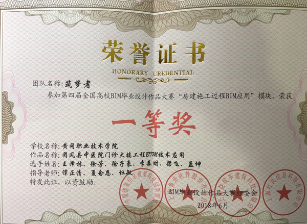 筑梦者团队获奖证书