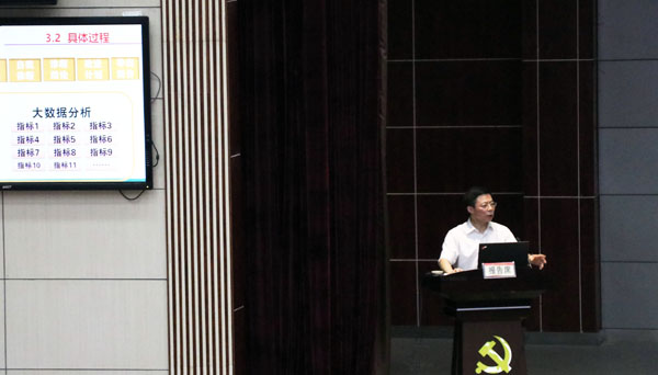 信息技术中心主任操惊雷就taptap点点诊改工作中的“一平台”的建设,从“信息平台的设计开发历程、平台应用操作方法、后续平台开发安排”三个方面进行了汇报。