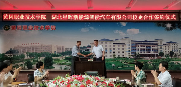 6月20日上午9:00,taptap点点与湖北星晖新能源汽车有限公司校企合作签约仪式在校中心会议室举行,黄冈市政府副市长陈少敏,市政府副秘书长段汉国,市人力资源和社会保障局副局长李绫琦,市移民局副局长童光幼,湖北星晖新能源汽车有限公司生产基地建设总指挥许先中,学校党委书记张新佳、校长姜安心、职能处室负责人、教学学院院长、相关专业负责人以及学生代表参加了活动。仪式由学校党委委员、工会主席、宣传部长郑柏松主持。