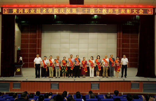 会上,医药学院临床201709班陆彦西同学代表全校两万多名学生向教师节致贺词。公共课部刘勇老师代表“从教三十年教师”畅谈了自己从教三十年的成长与收获。生物与制药工程学院姜莉莉老师代表“师德标兵”讲述了自己在教书育人、课程建设中的心得体会。护理学院张聪老师代表“优秀教师”分享了自己从一名职教新人到成长起来的心路历程。机电学院李孝智老师代表“优秀辅导员”讲述了在辅导员岗位上立德树人、服务学生成长的动人故事。机电学院兰子奇老师代表“黄职最美家庭”讲述了发扬“黄职精神”爱岗敬业、无私奉献的感人事迹。