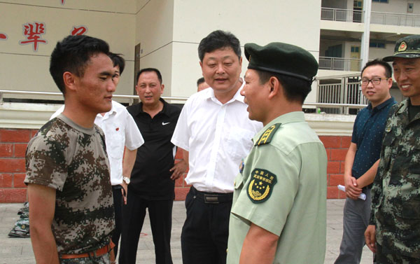 9月18日上午, 武警黄冈支队政委黎本军来taptap点点督查2018级新生军训工作。学校党委书记张新佳,党委委员、工会主席、宣传部长郑柏松陪同检查。