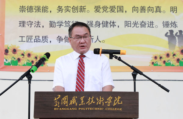 姜安心发表了热情洋溢的讲话。他代表学校全体师生员工对新同学的到来表示最热烈的欢迎,回顾了学校近年来取得的成绩,并对全体新生提出了三点希望:一是希望同学们崇德、强能,做德才兼备的人;二是希望同学们务实、创新,做追求卓越的人;三是希望同学们励志、自强,做敢于担当的人。