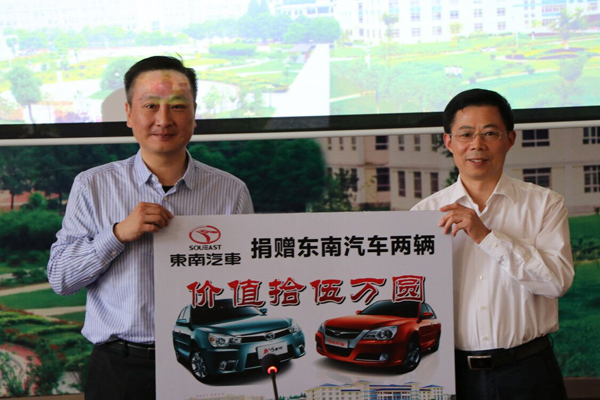 陈逸昌代表东南汽车公司向taptap点点捐赠了两辆东南品牌整车作为教学设备用车。