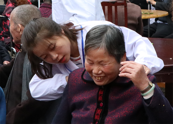 本次“康颖”青年志愿服务队由护理学院志愿者以及康复协会、护理协会志愿者组成。志愿者们利用所学专业技能为老人推拿按摩、测量血压,宣传老年保健知识,还表演了充满活力的舞蹈。在活动中,有的陪老人们聊天,给老人按摩、捶背,有的帮老人们扫扫地、擦擦窗户。老人们看着忙里忙外的志愿者们,很是激动,说:“儿女不在身边,多亏你们还能常来陪伴我们、帮助我们,真的特别感动,感谢你们。”活动现场气氛和谐,其乐融融,整个敬老院洋溢着温馨、祥和的气氛,老人们欣慰地享受着孩子们带来的关爱和幸福。