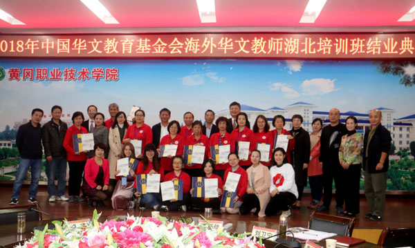 张新佳致辞,对学员们在培训期间的良好表现提出了表扬,对本次培训的成功举办表示了祝贺。刘卫宁表示,黄冈是历史文化名城,希望老师们把所见所学带回所在国,弘扬中华文化。学员代表纷纷发言,表达了对主办方华文教育基金会的感谢,对组织方辛勤工作的感谢,并分享了培训中学到的知识。最后,冯细国介绍了荆楚文化和湖北省侨务工作的情况,并对学员们提出了殷殷期望。