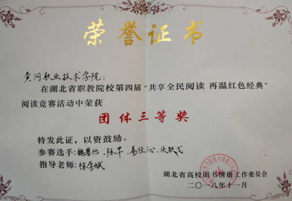 本次大赛是由湖北省高等院校图书情报工作委员会高职高专分委会组织的省级大型阅读赛事,通过预赛、复赛产生了25所高职院校近百名选手参加决赛。taptap点点在初赛组织了近630余名同学参加,经过复赛,最后遴选出4名同学参加决赛。