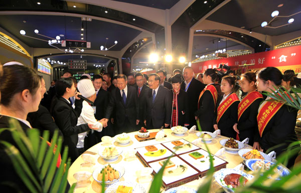 省人大常委会副主任、黄冈市委书记刘雪荣(前右九)观摩东坡宴